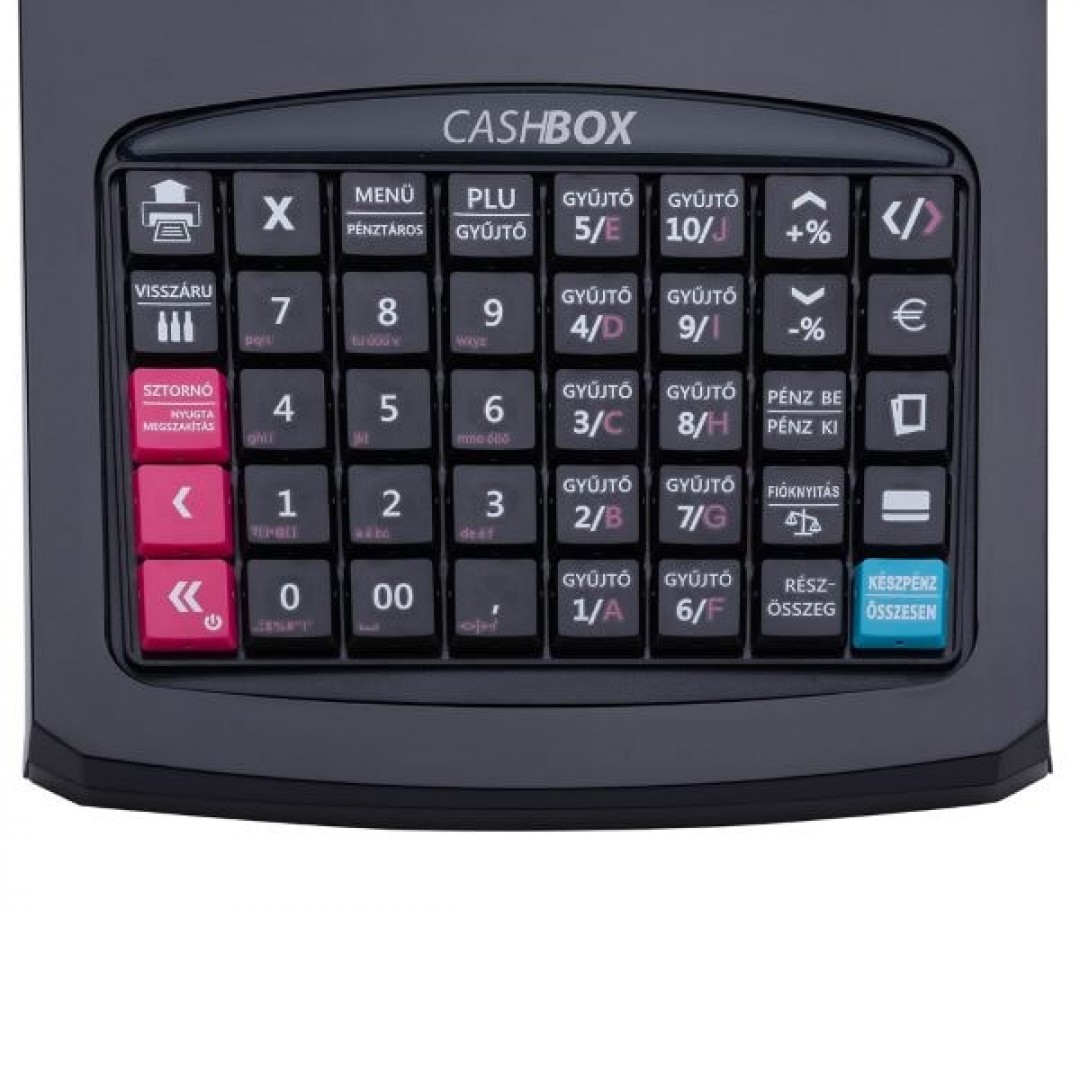 | Billentyűzet | A 40 darab strapabíró műanyag gomb elhelyezése ergonomómiailag átgondolt, ezáltal segítik a produktivitást. Az egyszerű piktogrammok gyorsabban felismerhetők a kiírt szövegnél. A különböző funkció csoportok színek szerint különválnak tovább segítve az eladót. Elsődleges funkciók fehér, míg a másodlagos funkciók narancsárga színüek. |